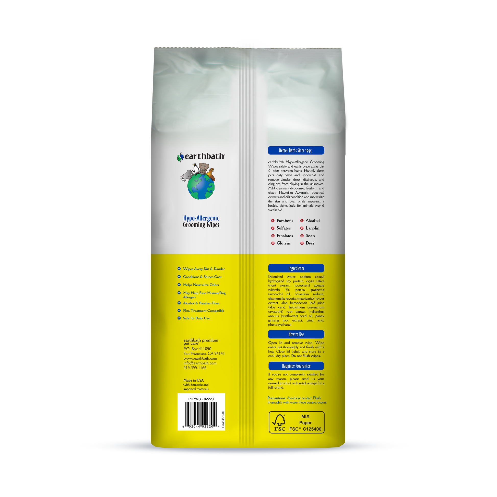 - Use earthbath Hypo-Allergenic Grooming Wipes with Awapuhi to safely and easily wipe away dirt and odor between baths.