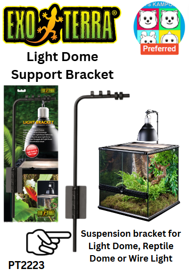 Light Dome Support Bracket Suspension bracket for Light Dome, Reptile Dome or Wire Light Easily adjustable Extends life span of light bulbs Suspends light fixtures securely Helps prevent accidental tipping Prevents terrarium damage With self-adhesive support base