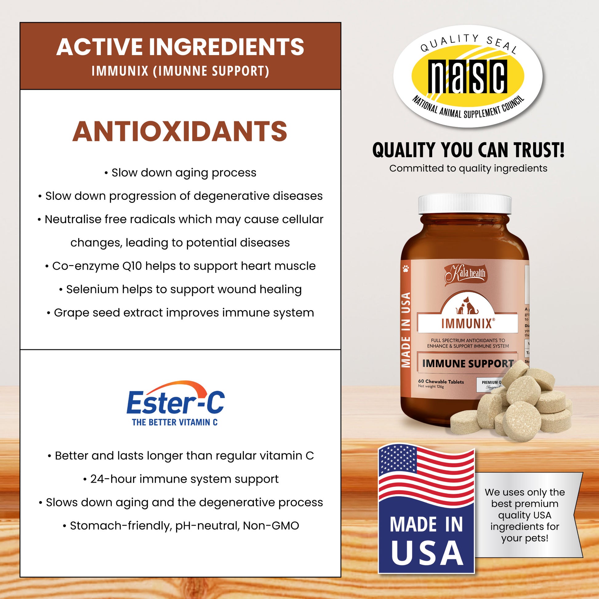 IMMUNIX® for Dogs and Cats is an exciting combination of proven ingredients which, when used in combination, is highly beneficial for the long-term maintenance of age-related or hereditary joint problems.