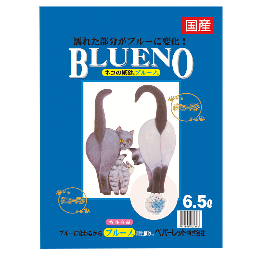 Clumping paper cat litter that changes blue when used. Made with recycled paper pulp and diaper paper as main material for this "clumping type" cat paper litter.