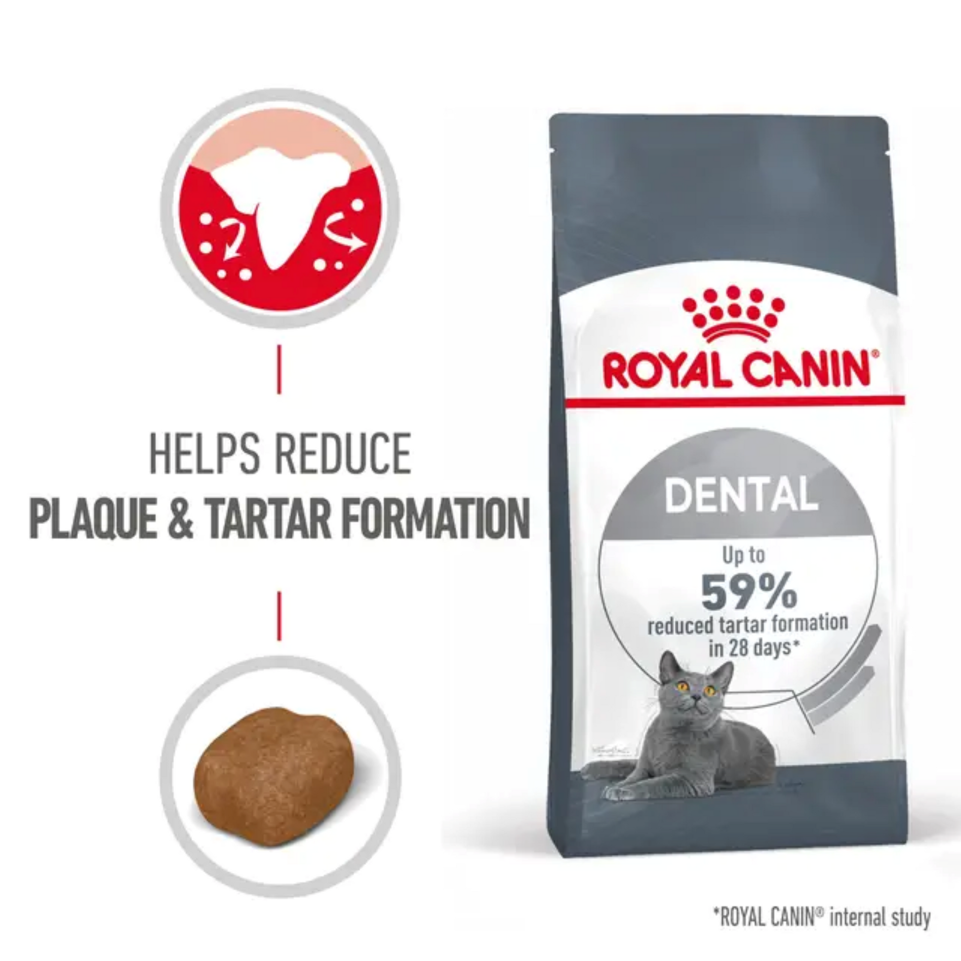 What are the key benefits of this targeted nutritional solution? ORAL CARE is a nutritionally balanced formula that promotes oral health by reducing plaque formation. With a double action: - Mechanical action: specifically designed for a targeted action, the size, the texture and the shape of the ORAL CARE croquette encourage the cat to chew well. This mechanical action produces a daily toothbrushing effect that helps reduce the formation of dental plaque. - Chemical action: formula enriched with an "active dental agent" (calcium chelators) that traps salivary calcium and helps limit the mineralization of plaque.