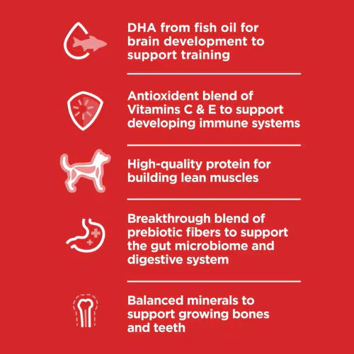 Hill’s Science Diet Puppy dry food is rich in flavor & carefully formulated with vital nutrients to support 5 essential building blocks for lifelong health, so they get the best start in life & grow to their full potential.