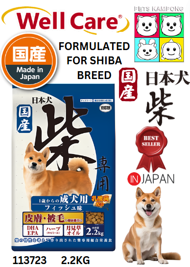 This dog food is made specially made diet for Shiba Inu Japanese Dog. 3 main ingredients consider the maintenance of 'Shiba' skin & health and the ideal body shape. Made with high DHA / EPA to maintain 'Shiba' skin. It comes with 2.2kg
